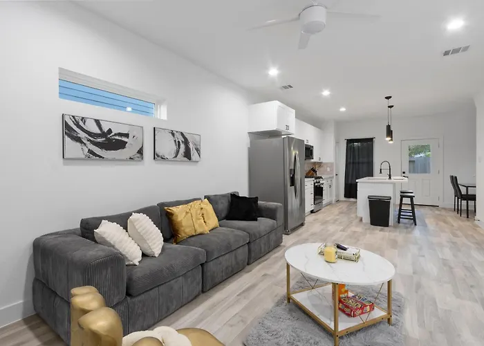 O apartamento Chic Grey Escape Close To Downtown Fun Houston de 118 m² inclui pátio e está localizado a 13 minutos a pé de Macedonia Missionary Baptist Church.
